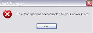 Apakah anda pernah mengalami Ketika Task Manager Tidak mau Terbuka. baik ketika klik kanan di taksbar. maupun ketika di tekan Ctrl+Alt+del. task manager tetap tak terbuka hanya muncul pesan selamat anda mendapatkan hadiah 1 unit mobil Avanza.hehehehe.... becanda gan. maksud saya muncul pesan "Task Manager has been disabled by your administrator" padahal kita lagi pengen nampilkan 'task manager' dengan alasan